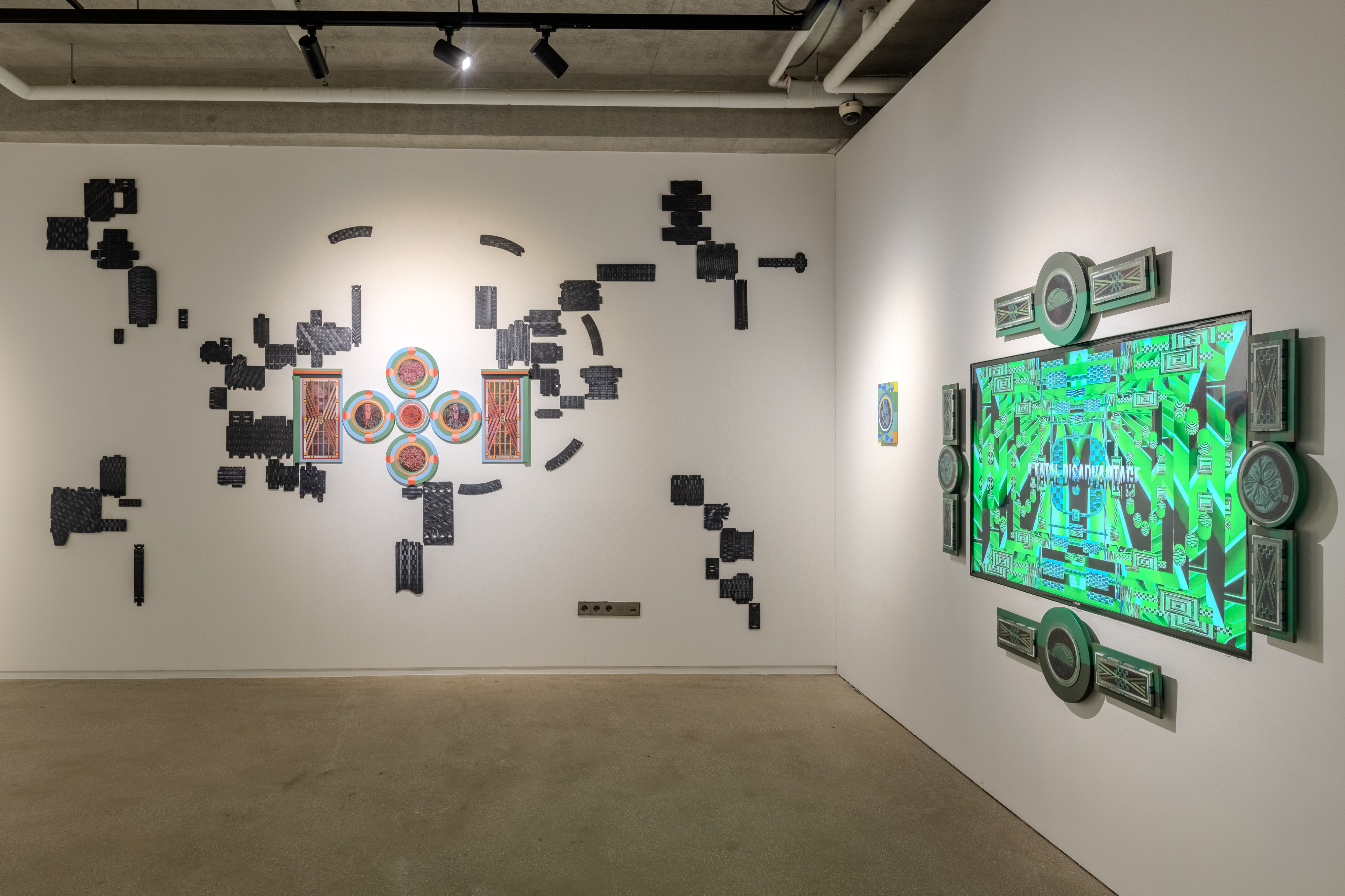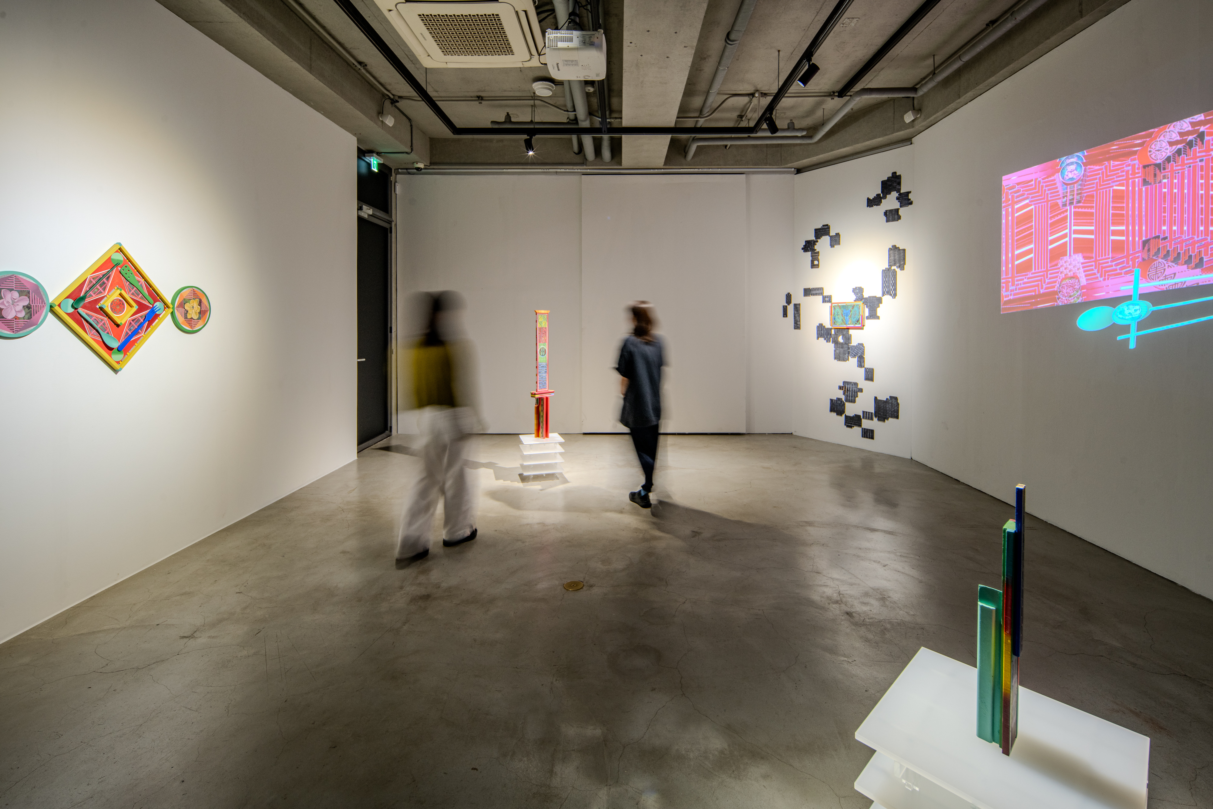 물질주의와 소비주의, 그리고 끊임없이 흘러 들어오는 정보의 홍수 속에 불안감과 피로감을 느낀 미술가 민준홍은 영상과 음향, 설치 작업으로 탐구하는 과정을 통해 일상에서 포착할 수 있는 현대인의 삶을 보여준다. 각 작품에서 보이는 패션 브랜드 가방과 의자, 커피포트, 테디베어, 그리고 최근 유행했던 퉁퉁퉁 사후르(AI 사물 합성 밈의 캐릭터)가 동일선상에 놓인 기묘한 조합에 의문이 생기면서도 어쩐지 웃음이 나온다. 또한, 한국 전통 문양과 색감에서 보이는 반복되는 현대 건축 패턴이 맞물려 친숙하지만 낯선 풍경을 만들어낸다.