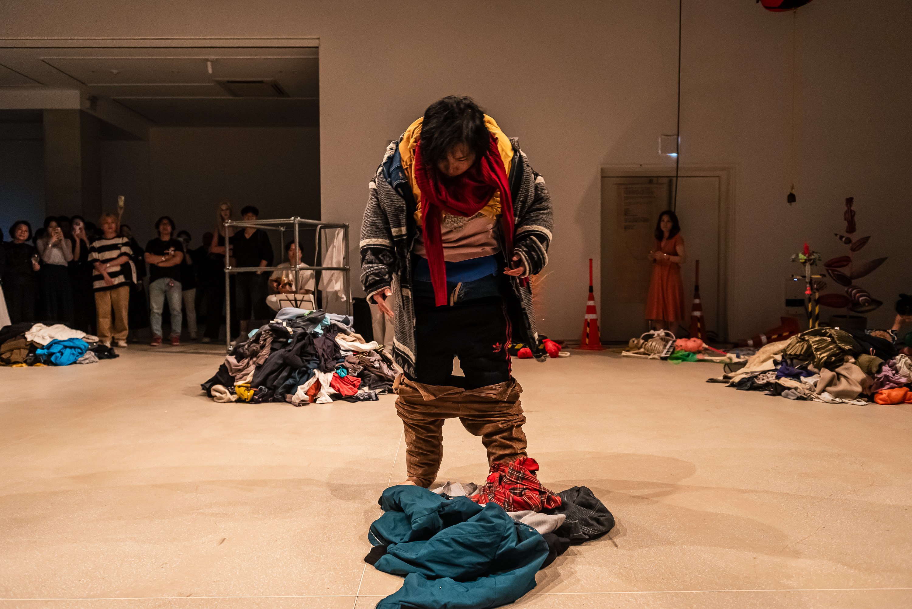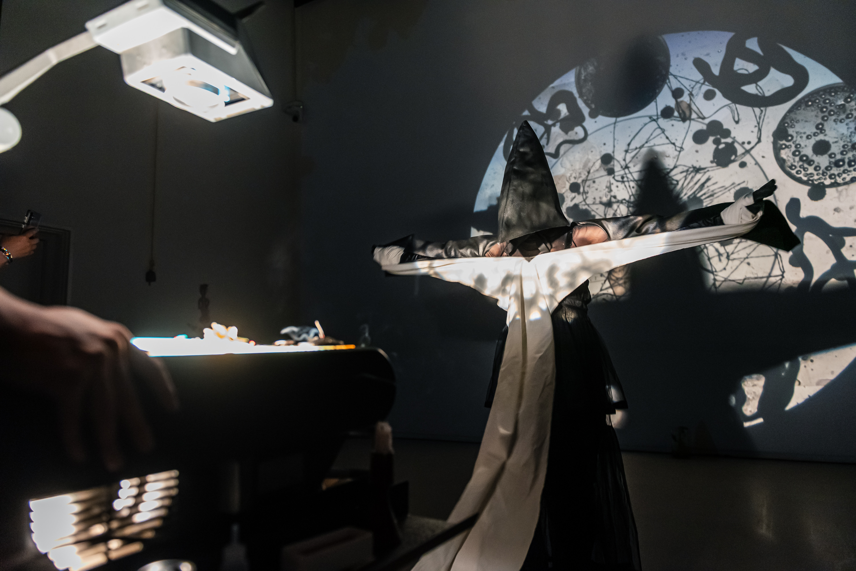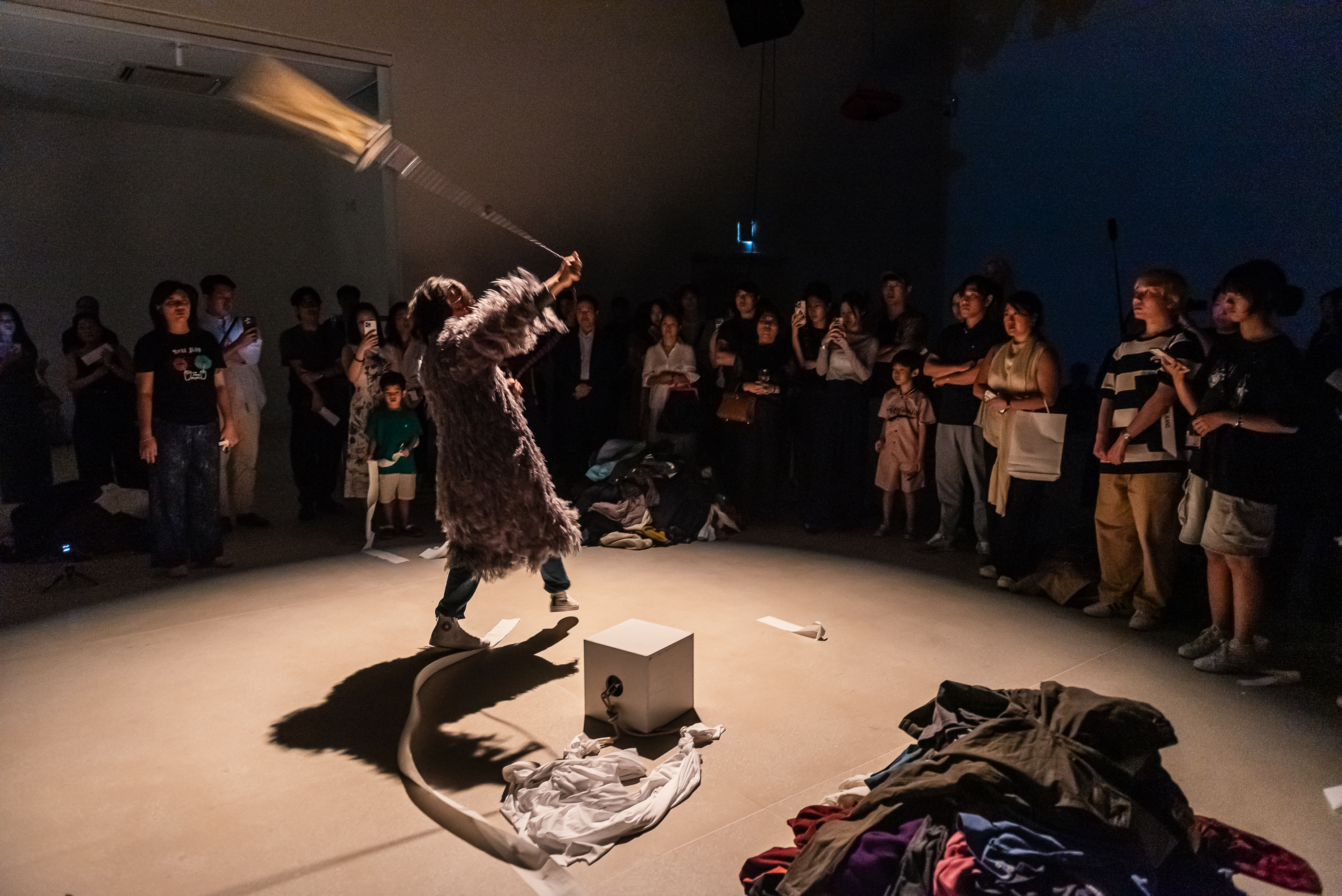 안무연출가, 다원예술가, 미디어 아티스트, 음악가, 시각예술가가 모인 예술가 집단인 ‘콜렉티브 뜨’는 작년 《2024 Platform-L Live Arts Program》에서 발표한 작품 〈자유시점, 궤도 이탈〉이 최우수작으로 선정되었습니다. 이에 올해는 그 후속작인 〈경계 Deadline of Flight〉를 선보였습니다. 〈경계〉라는 주제를 다섯 가지 감각으로 탐구하는 전시형 퍼포먼스입니다.