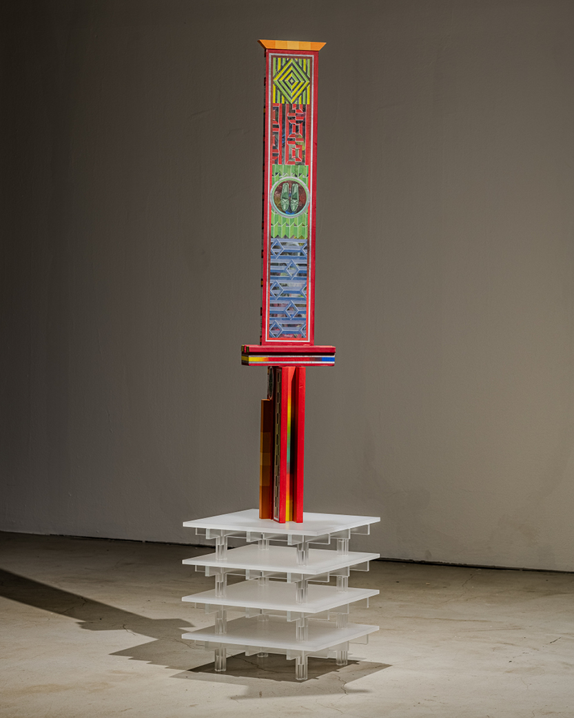 휴먼신스 1982, <백만의 시간 108>, 키네틱 설치, 진회색 코리안, 흰색 시계 바늘, 전자 컴포넌트, 2015