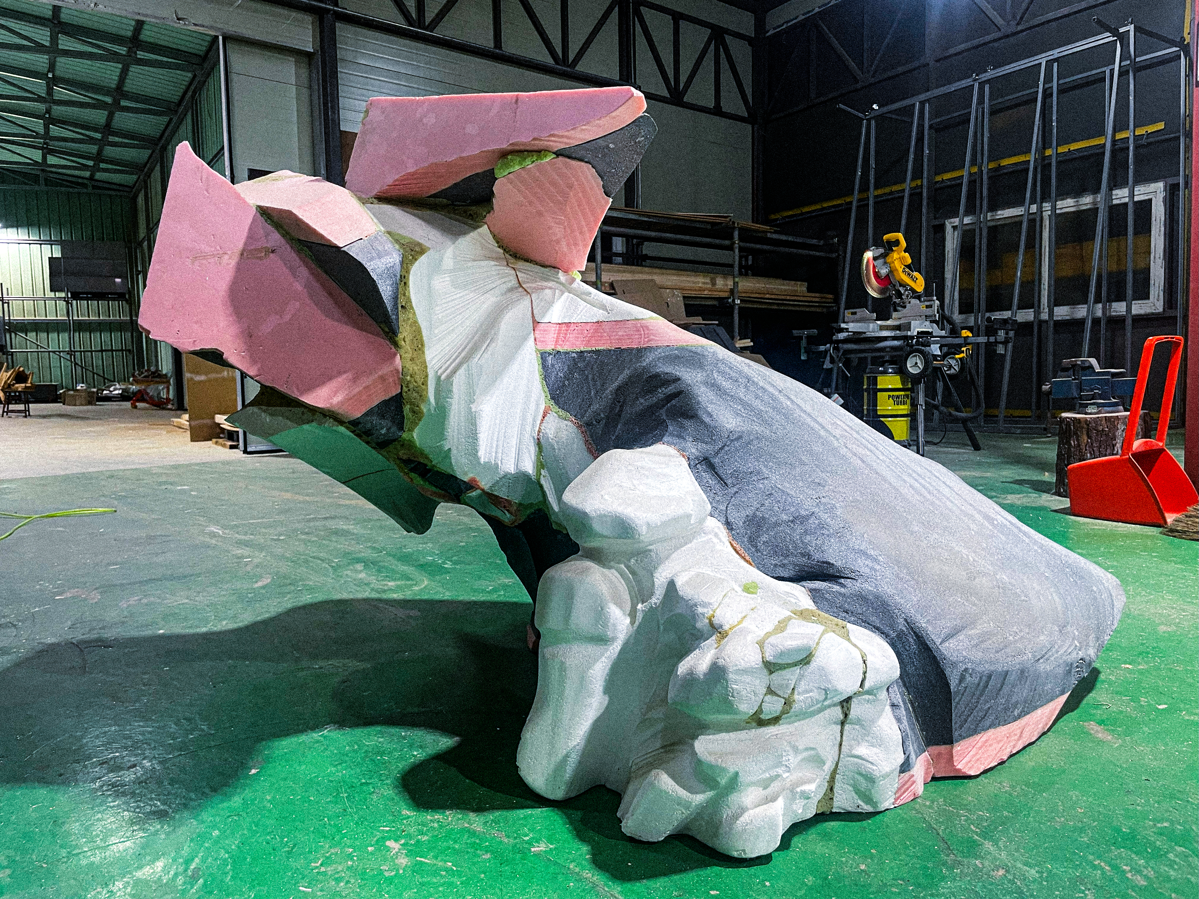 ⓒ 정명우,《Fake Stone》, 2025. 스티로폼, 인테리어 필름, 데코 페인트, 락카, 에폭시 마감, 105cm(h)x180cm(w)x130cm(d), 사진: 작가 제공